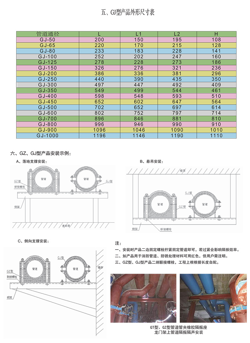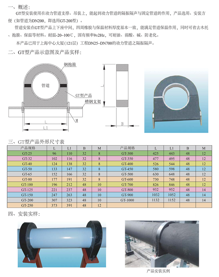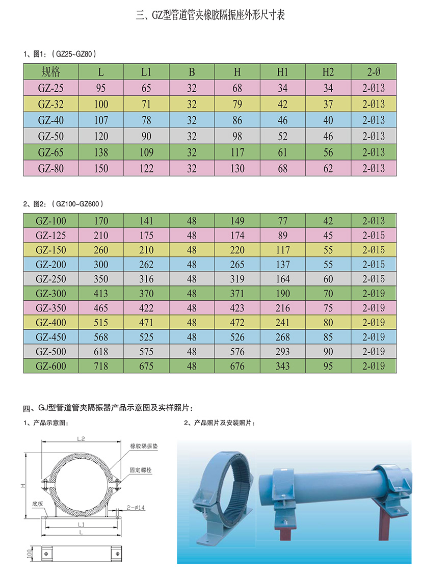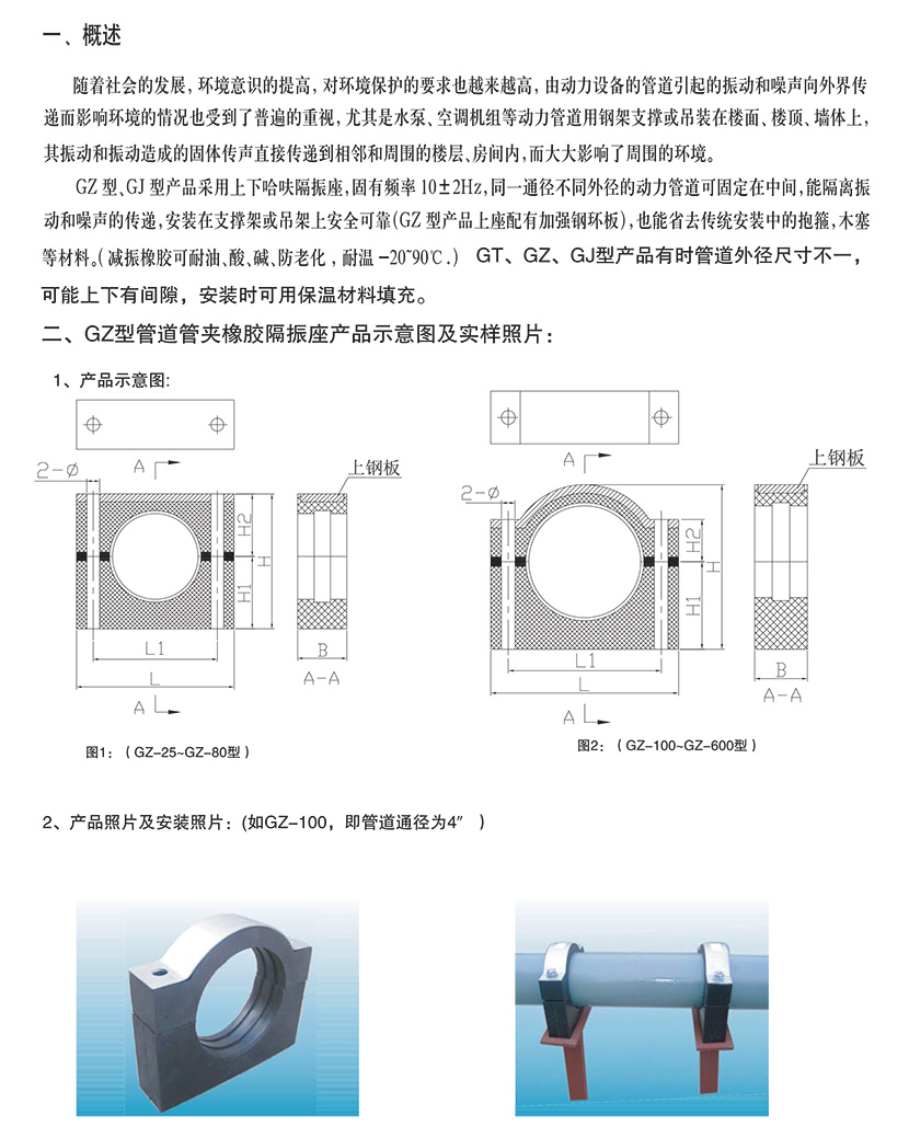 GT型、GZ型、GJ型管道管夹橡胶隔振器