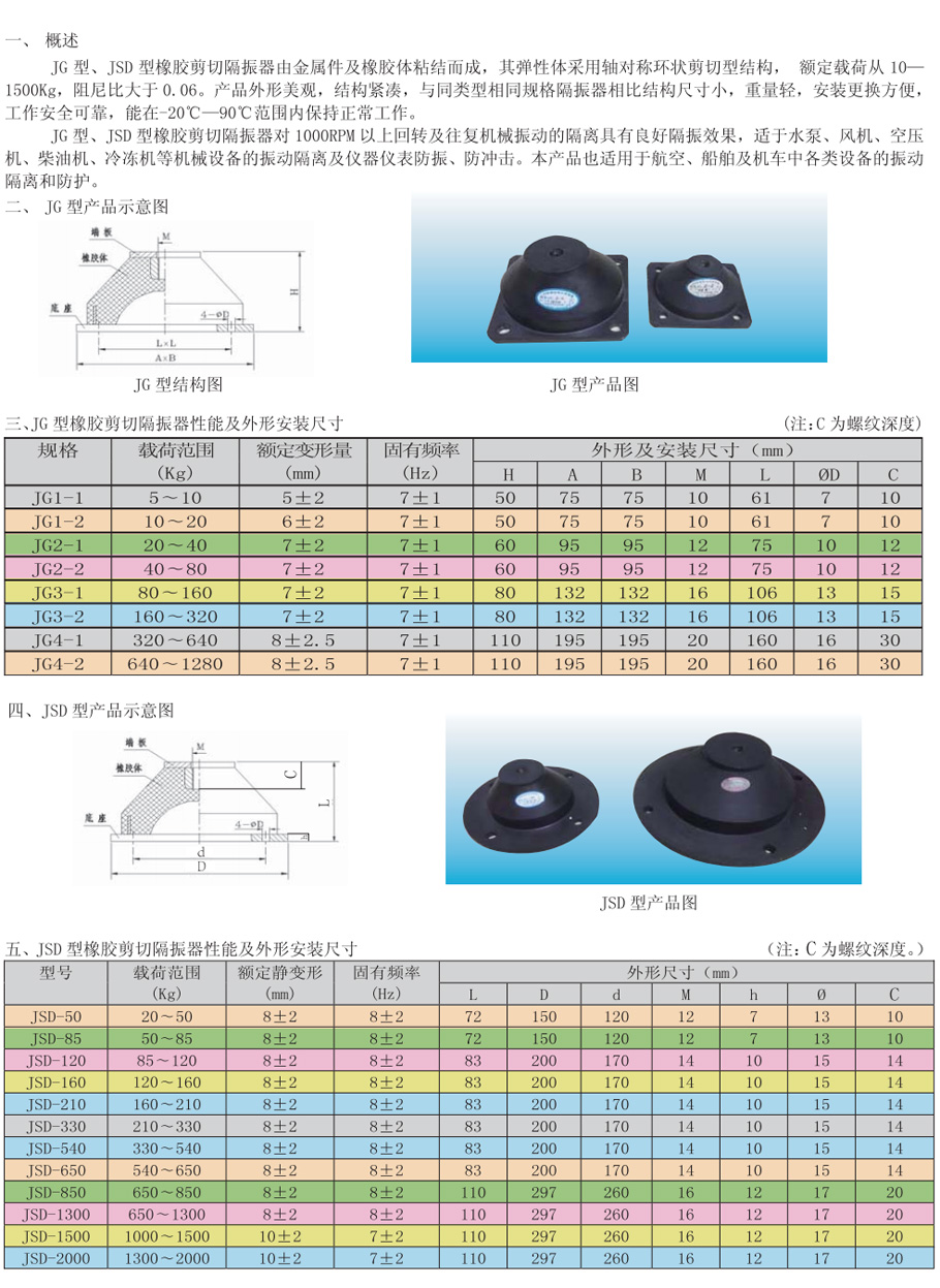 JG型、JSD型橡胶剪切隔振器
